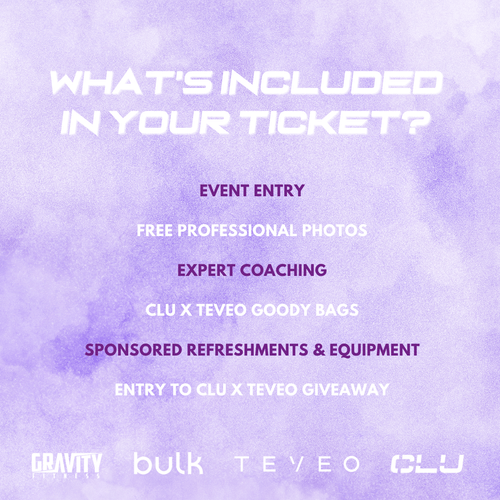 - CLU x TEVEO Giveaway: Event attendees will be automatically entered into a raffle giveaway with their ticket purchase, with 2 winners selected. Each winner will receive three items of their choice from the TEVEO website.