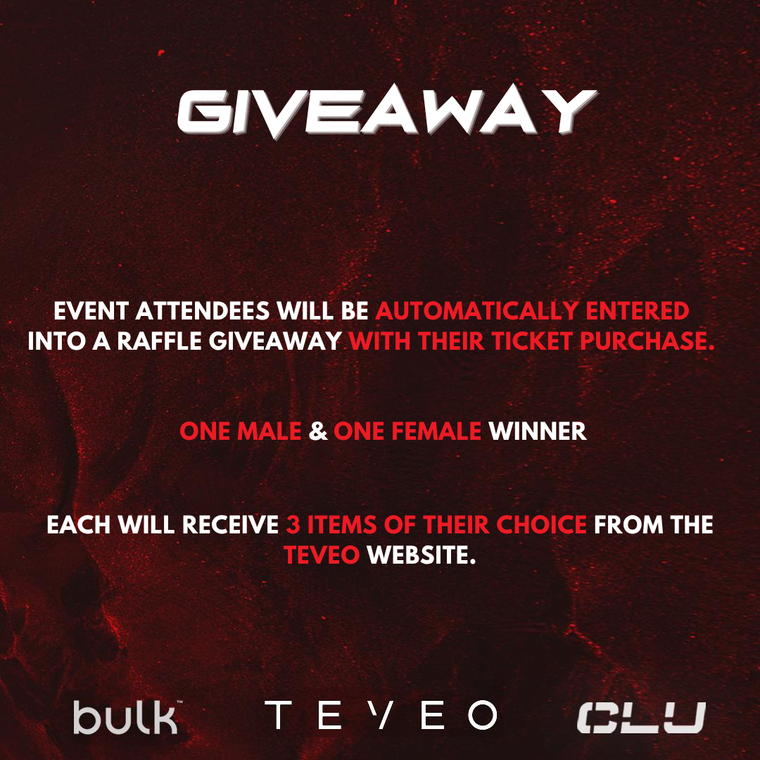 - CLU x TEVEO Giveaway: Event attendees will be automatically entered into a raffle giveaway with their ticket purchase, with 2 winners selected. Each winner will receive three items of their choice from the TEVEO website.