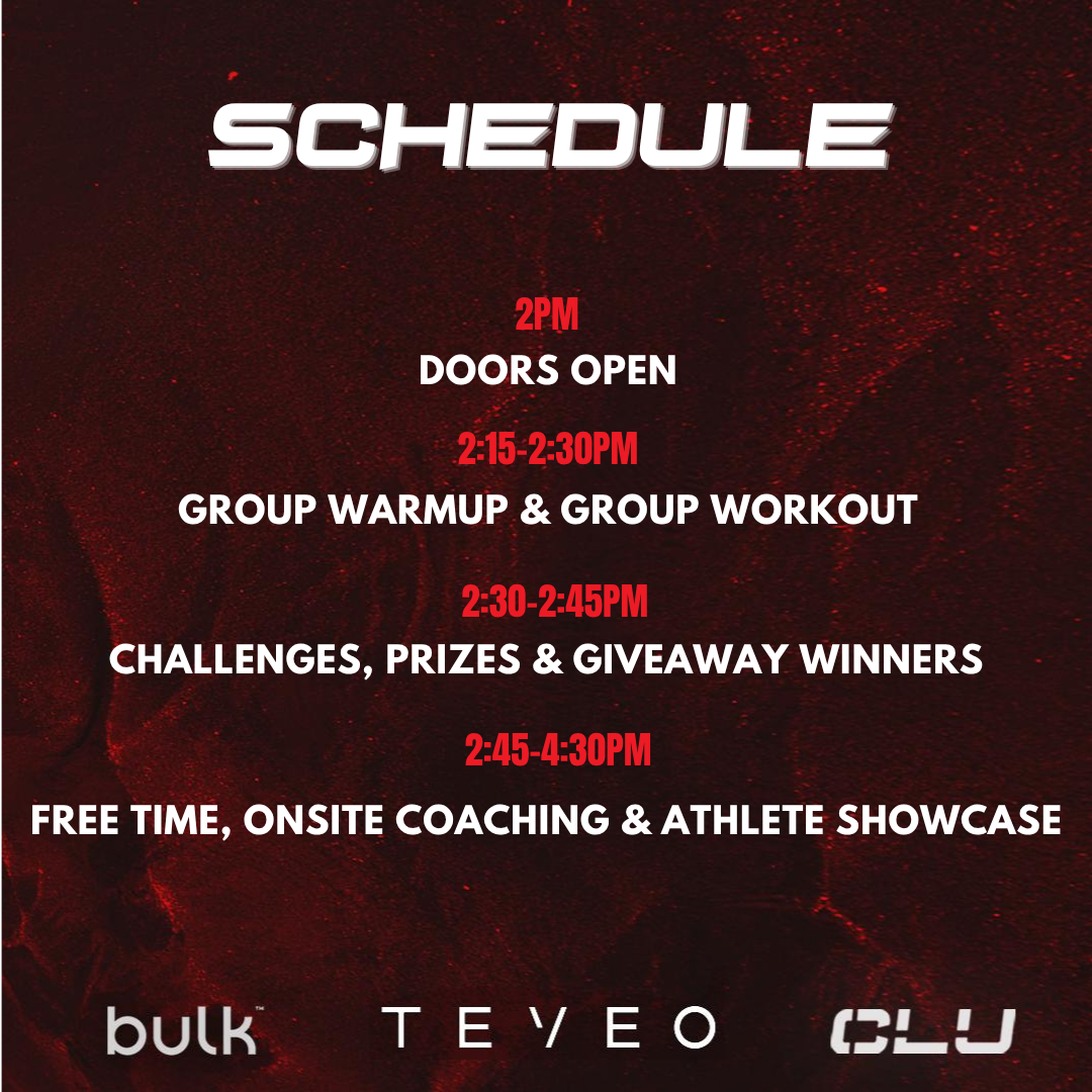 - Athlete Showcase: A chance for athletes to step up and showcase their skills and strength in front of the community as they inspire, motivate and elevate everyone around them. Bring the energy or soak it in.